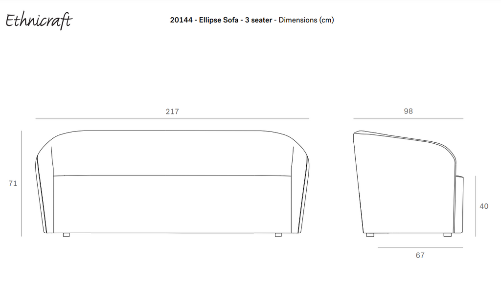 Size: W217 x D98 x H71 - Seating height: 40cm.