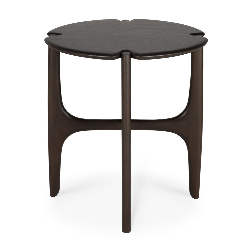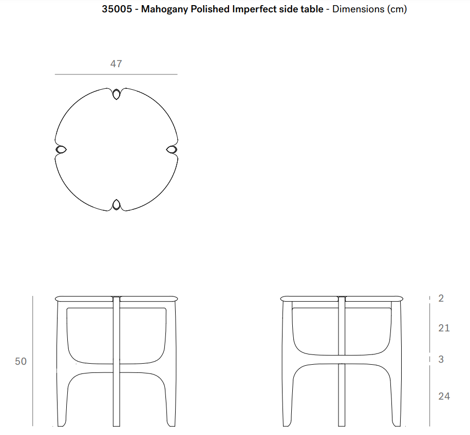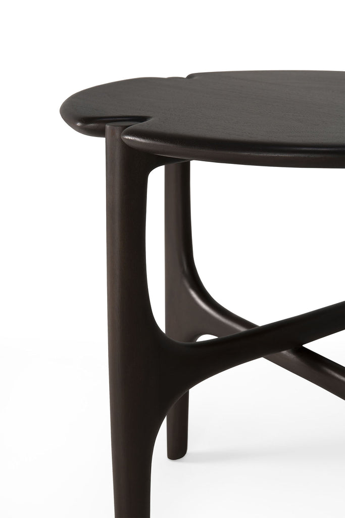 The PI collection honors nature’s design, by keeping the strength, curves, and lines, as nature intended. Interesting shapes are discovered in this sleek and stylish, polished imperfect, finish. Each PI side table is finished by hand to ensure that the individual character of the wood is respected. Designed by Alain van Havre. Made from dark brown tainted mahogany with a varnish finish.