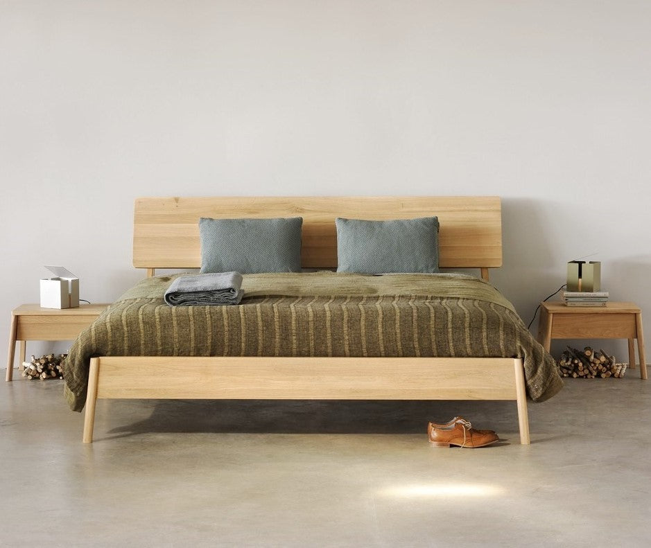 The name 'Air Bed' says it all: the idea was to add softness, roundness and overall lightness to the usual concept of a bed. Ethnicraft’s Air bed in solid oak manages to look sturdy yet light at the same time. Made from solid oak with a hard-wax oil finish.
