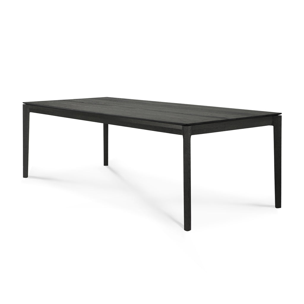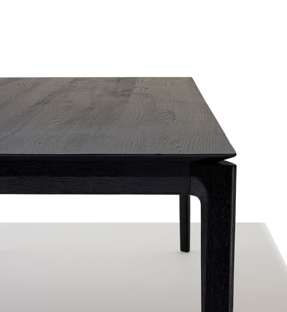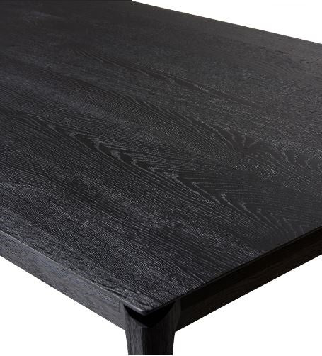 Just like its matching chair, the Bok solid oak black dining table has become one of our signature designs. Its airy shape yet rock solid construction make this piece a timeless and remarkable design to enjoy for years to come. Made from black tainted solid oak with a varnish finish.