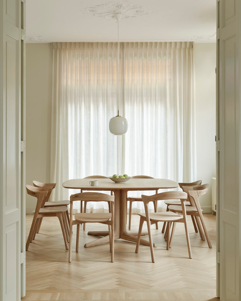 Inspired by the vaults within grand architectural designs, the Corto's (generous 8-seater) central-footed base provides both visual interest and practical stability with less leg disturbance for your guests. The solid oak tabletop is crafted into the perfect shape, with unique rounded corners to create welcoming and comfortable social or professional gatherings. Made from solid oak with a hard-wax oil finish.