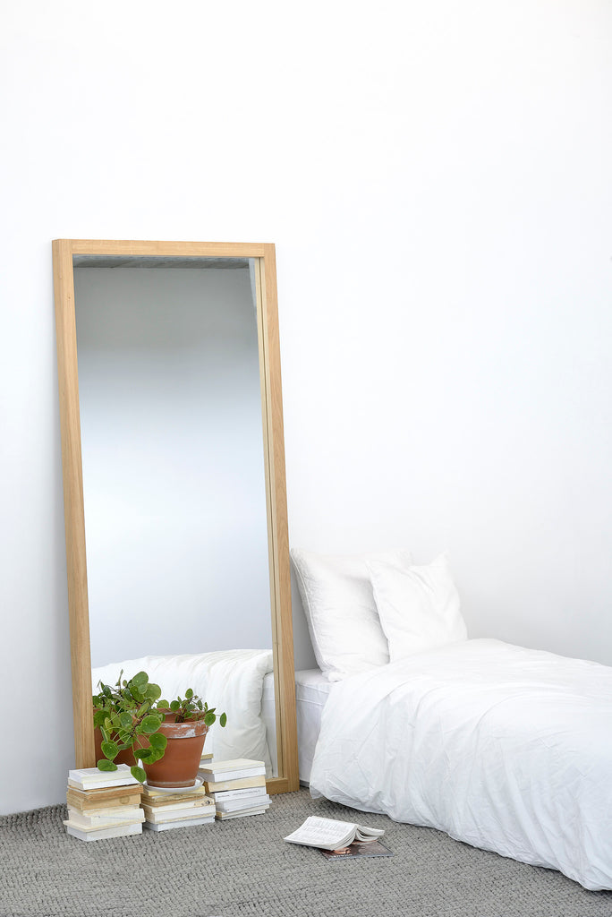 Frame your reflection with the elegant oak Light Frame mirror. Lean this full-length mirror against the wall, or mount it up vertically or horizontally. Tall and bold, this mirror handsomely adds brightness and stature to the living space. The mirror frame is made from solid oak with a hard-wax oil finish.