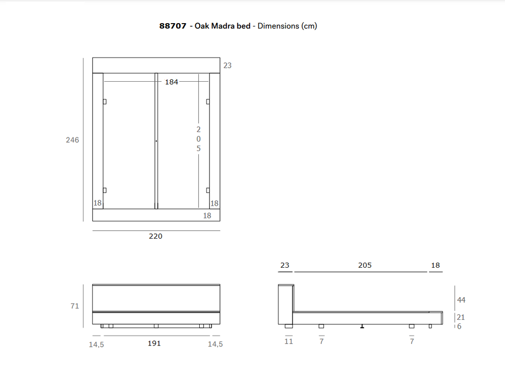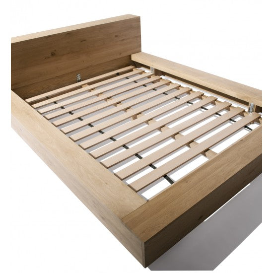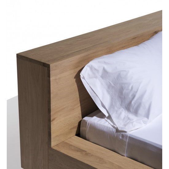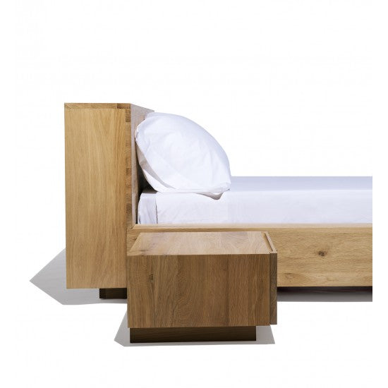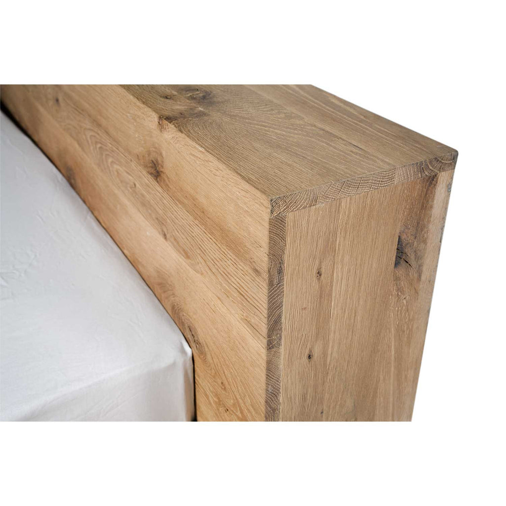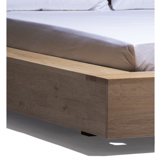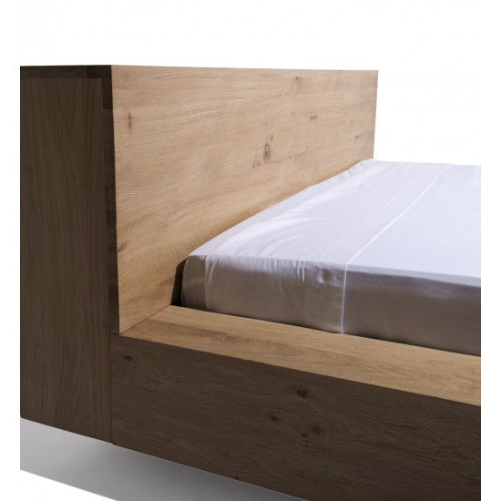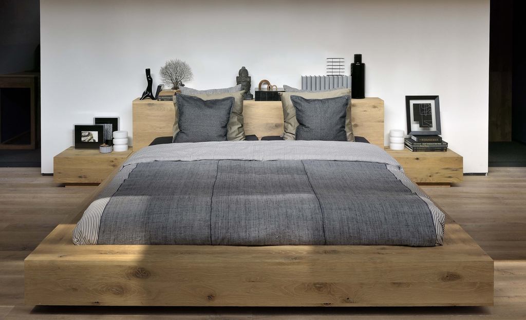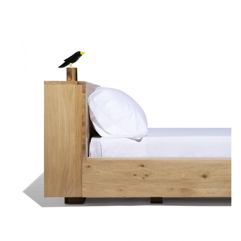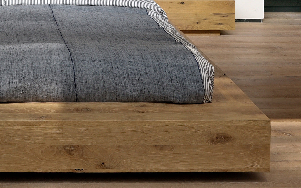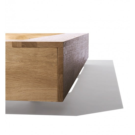 The Madra bed and matching bedside table exude an ambiance of balanced harmony. The rough finish of the wood adds a pure, natural look to the bedroom. With its clean lines and natural materials, the Madra collection contributes to a good nights sleep and an ever better waking. Made from solid oak with a hard-wax oil finish.