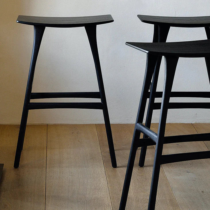 Osso is one of Ethnicraft's most popular designs because of its versatility. The height of this solid oak counter stool adds yet another option to its wide array of possibilities - as an elegant and sturdy kitchen stool for example. Seating height: 65cm. Made from black tainted oak with a varnish finish.
