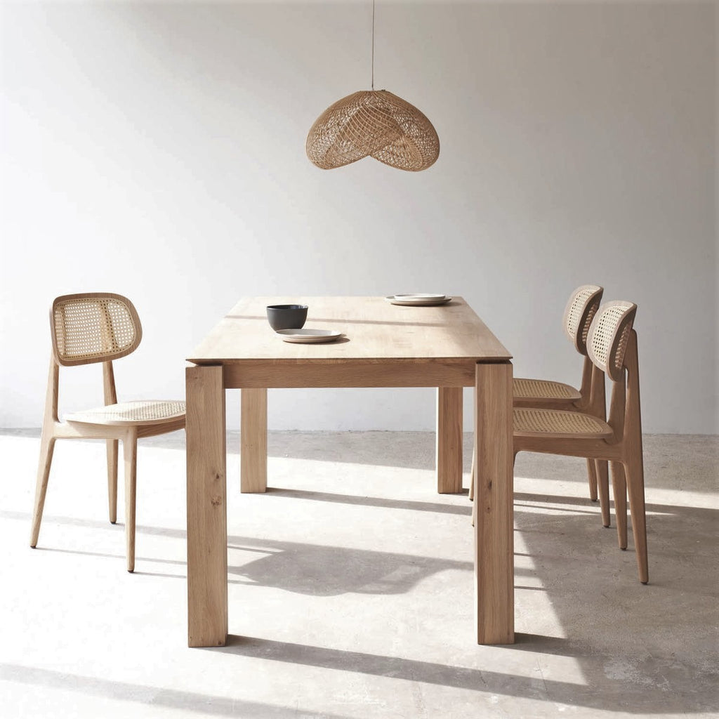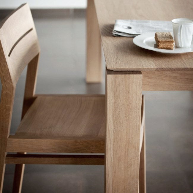 The Oak Slice dining table is hand crafted out of solid Oak and offers warm neutral tones, while the clean lines lend themselves to a contemporary feel. Featuring a unique "Slice" around the perimeter of the table top, it seemingly floats for a visually striking appearance. Made of solid Oak using classical furniture making techniques these tables are built for life and naturally resilient for heavy family and guest use. Table top and legs need assembly. This product is made using sustainable and responsible wood and is FSC certified.