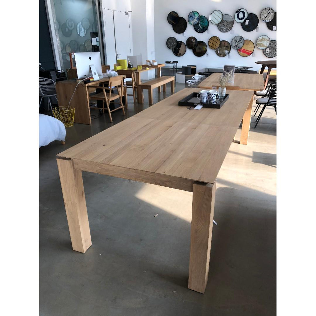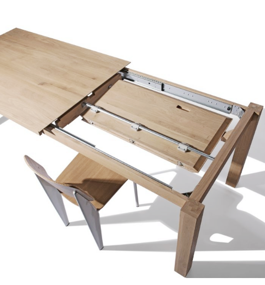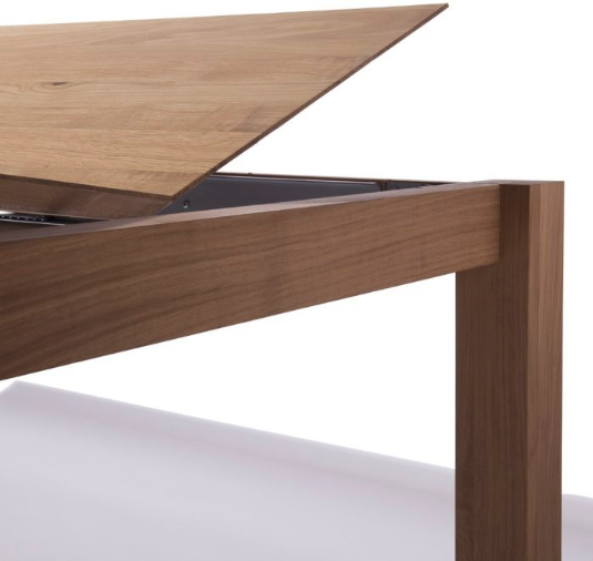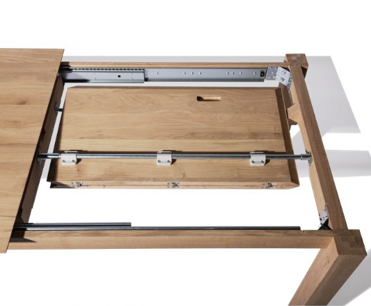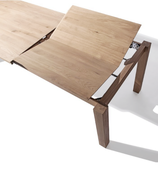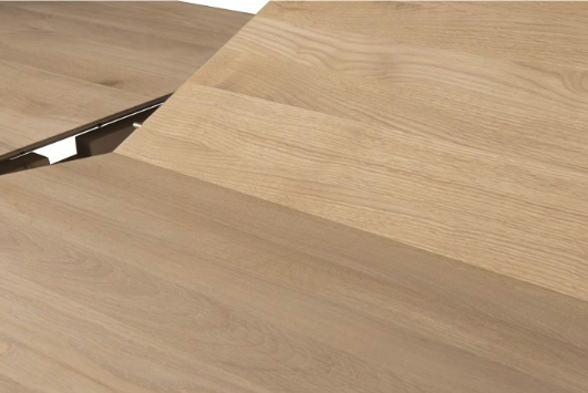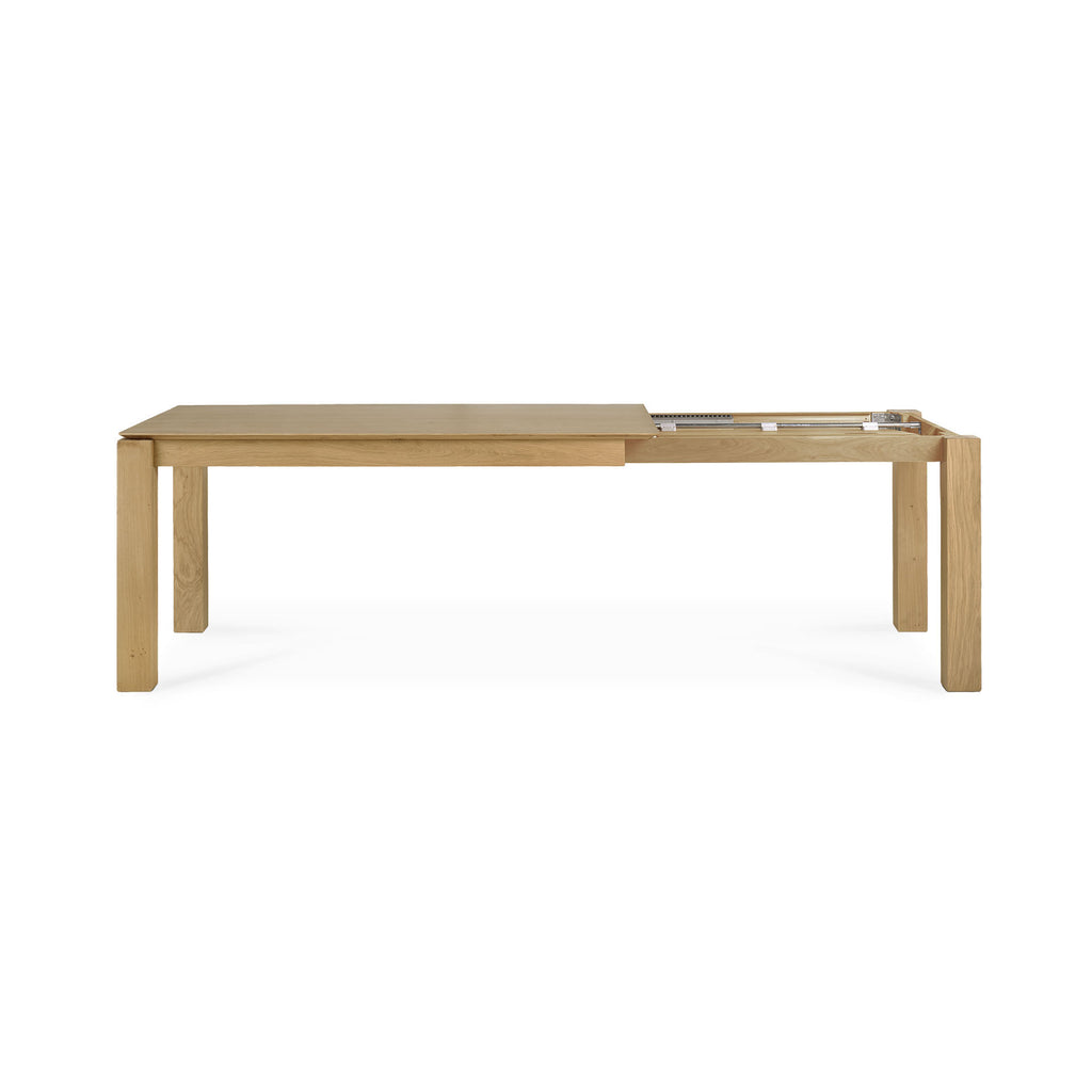 The Oak Slice dining table's beveled edges give it a unique character, but we also added a little extra. This table can easily be extended, making room for many more. Made from solid FSC certified Oak.