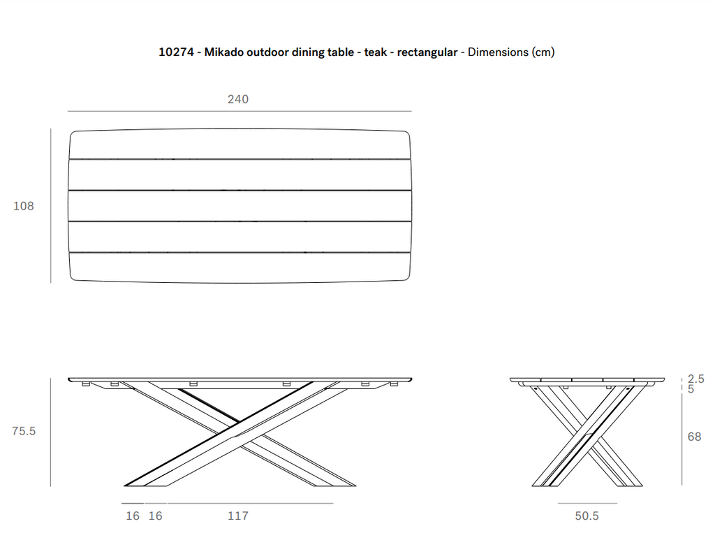 The Mikado 10-seater dining table, designed by Alain van Havre, has been one of Ethnicraft's most recognizable designs for years. Its sculptural character is the result of a quest to find a balance between functionality and stability. Mikado’s legs interlock like a well-thought-out puzzle, while the adapted grooved table top in solid teak makes outdoor life a simple pleasure. Made from 100% solid FSC-certified plantation Teak. For indoor and outdoor use.