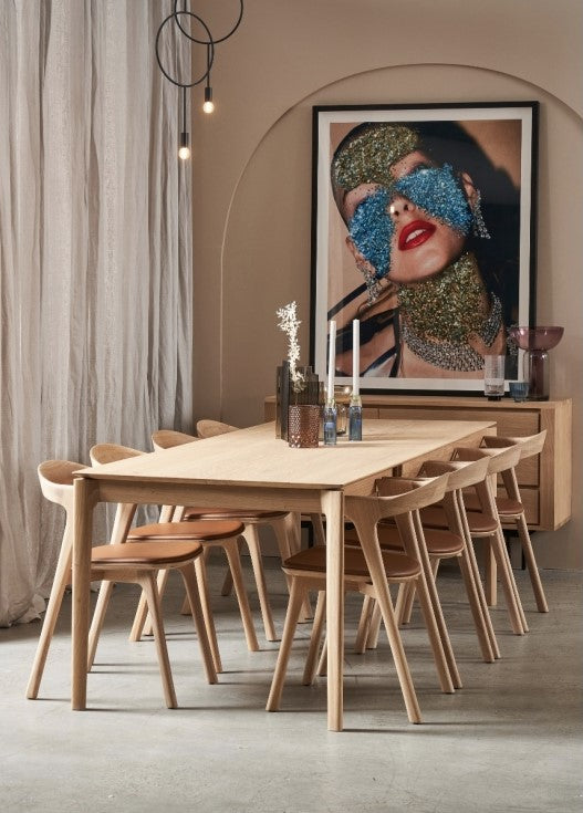 Ethnicraft's signature Bok table, made extendable to bring even more people together. Its airy shape yet rock solid construction make this solid oak extendable dining table a timeless and remarkable design to enjoy for years to come. Made from solid oak with a hard-wax oil finish.