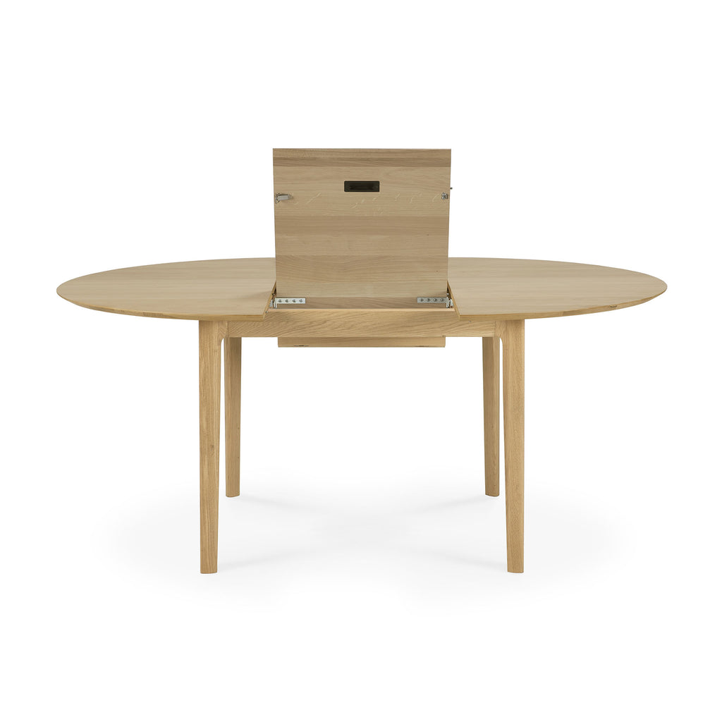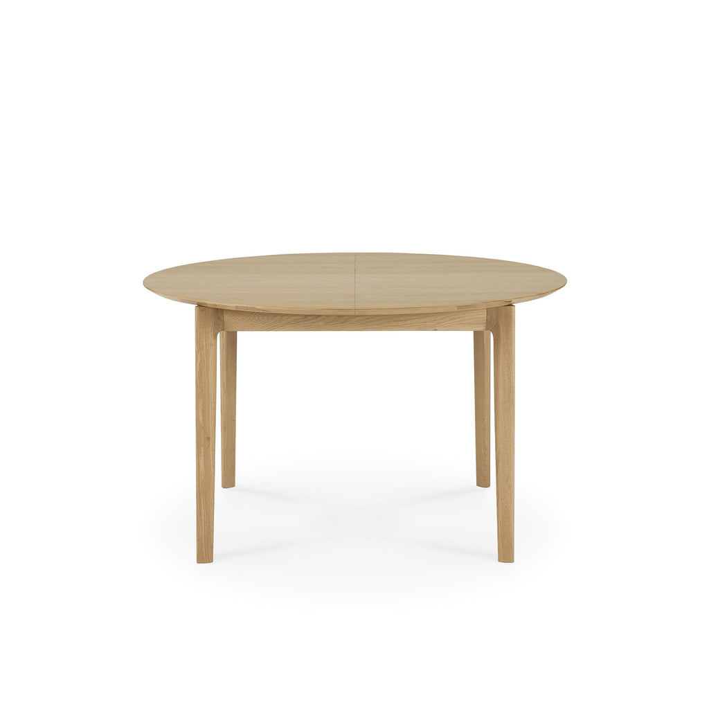The Bok solid oak round extendable dining table offers the perfect solution for adaptable dining within a smaller space. With an internally housed extension the round four-seater easily adapts for more people. The Bok's iconic airy shape and solid construction make for a timeless design to enjoy for years to come. Made from solid oak with a hard-wax oil finish.