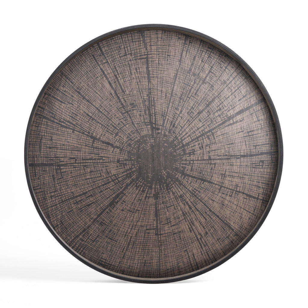 A subdued color palette meets captivating motifs inspired by nature and travel. This Ethnicraft Black Slice wooden tray experiments with the balance between rich patterns offset with muted tones, revealing the beauty behind the deceivingly ordinary subjects from which inspiration is drawn. In doing so, this collection captures the essence of timelessness.