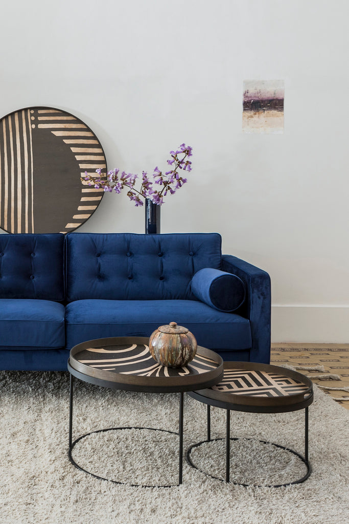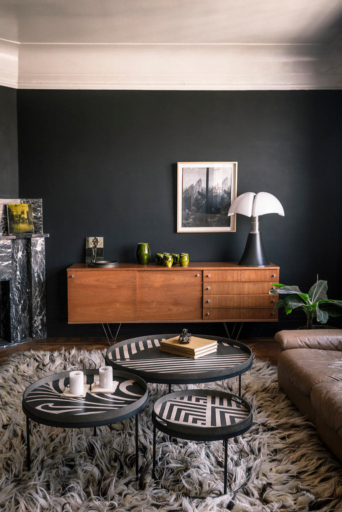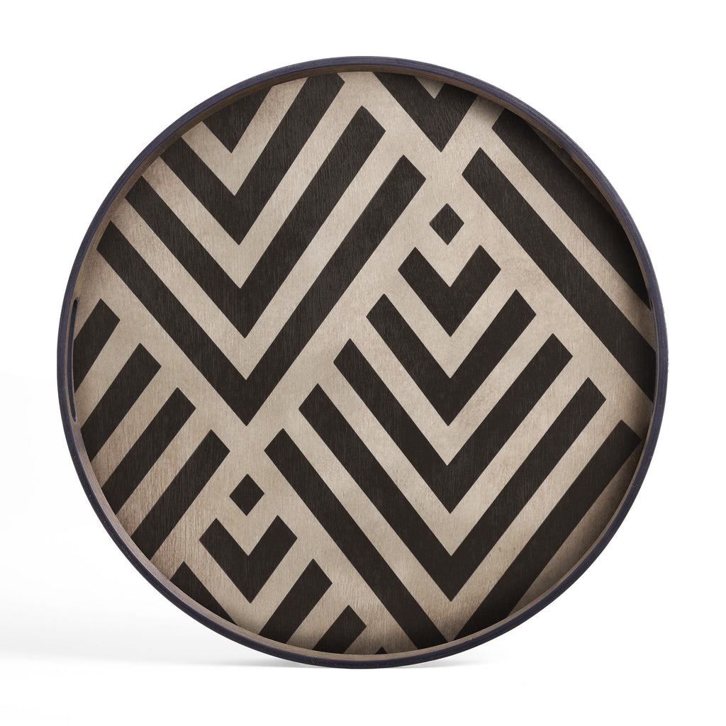 The Urban Geometry collection of trays is inspired by the Art Deco architecture and geometric patterns our designer Dawn came across during her travels in Europe. Although streamlined with a monochromatic palette for the majority of the designs, you will find a burst of paprika, pumpkin, saffron and a dash of steel blue to balance out the collection. Add these serving trays to any environment to add touches of colour and interest throughout the space. Hand painted and silk-screen printed wood.
