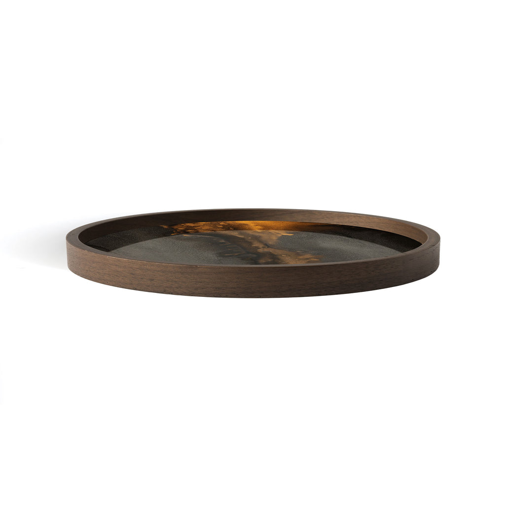 Organic movement meets linear shapes in the Linear Flow tray collection. This Bronze Organic glass valet tray is inspired by the ink drawings at the beginning of the design process, when the pigment hits the glass it takes on a remarkable life of its own. Complementary effects are revealed in unexpected ways, where hand sketched and painted linear patterns generate a truly distinctive finish.