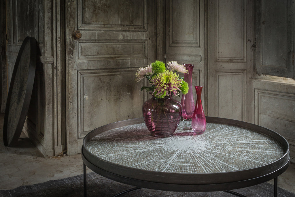 A subdued color palette meets captivating motifs inspired by nature and travel. This Ethnicraft White Slice wooden tray experiments with the balance between rich patterns offset with muted tones, revealing the beauty behind the deceivingly ordinary subjects from which inspiration is drawn. In doing so, this collection captures the essence of timelessness.