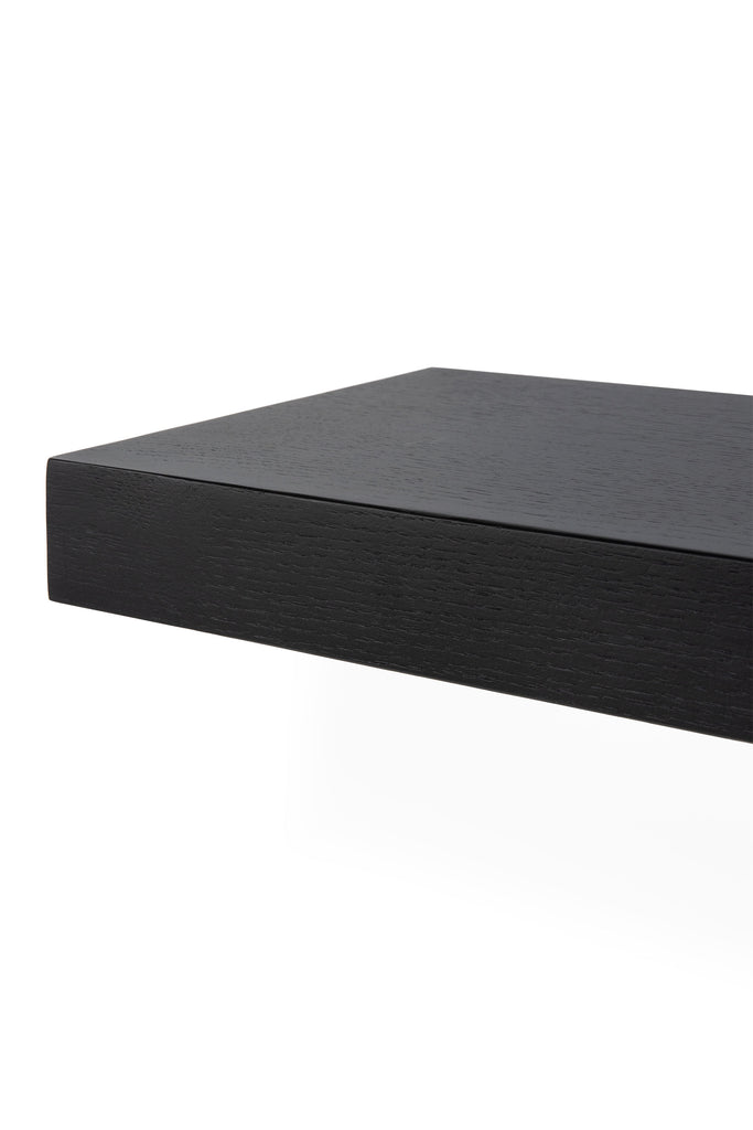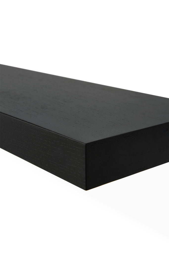 This elegant wall shelf, crafted from European Oak, is the perfect solution for extra shelving needs. Featuring simple, clean lines, they can be aligned or stacked on the wall in your preferred combinations. Comes with a flush-mounted stainless steel keyhole bracket for easy installation. Made from black-tainted oak with a varnished finish.
