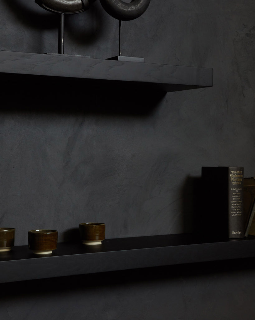 This elegant wall shelf, crafted from European Oak, is the perfect solution for extra shelving needs. Featuring simple, clean lines, they can be aligned or stacked on the wall in your preferred combinations. Comes with a flush-mounted stainless steel keyhole bracket for easy installation. Made from black-tainted oak with a varnished finish.