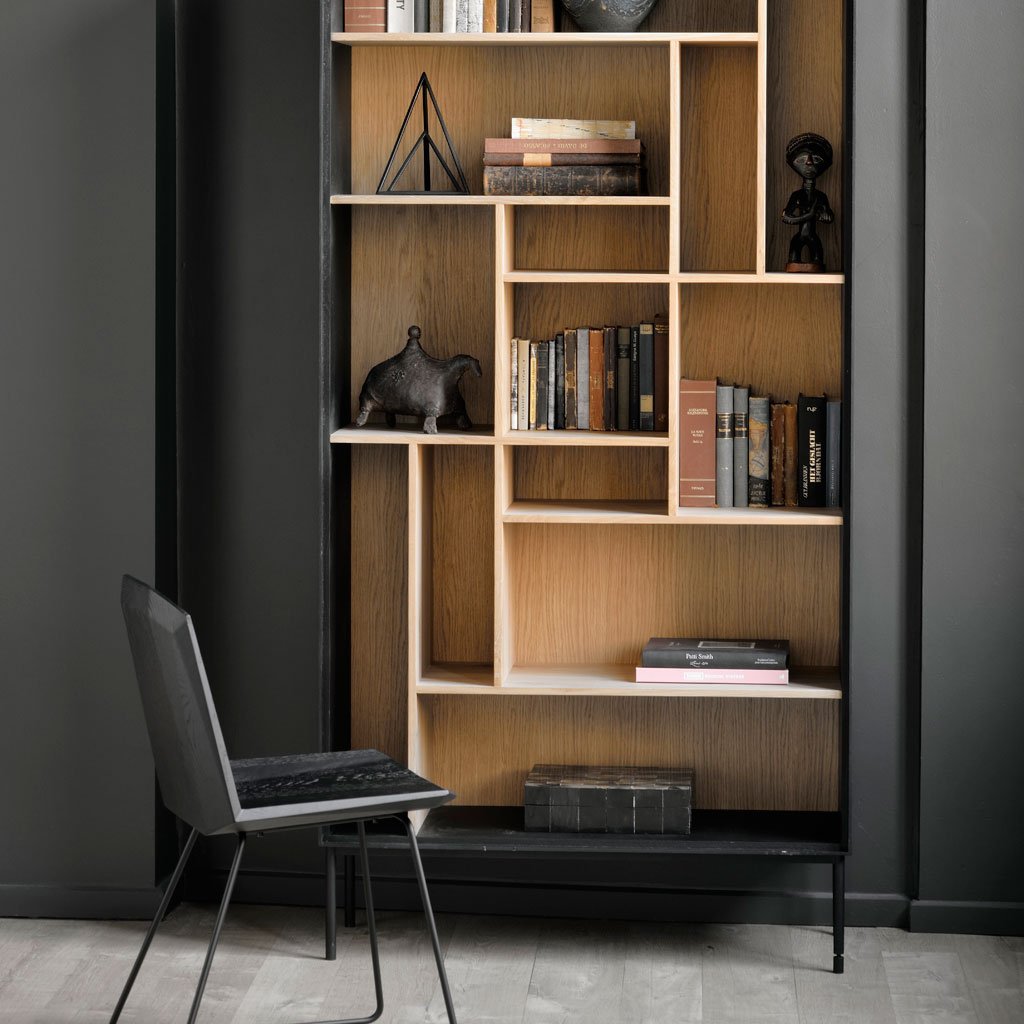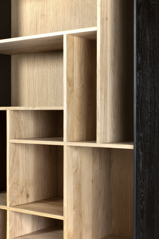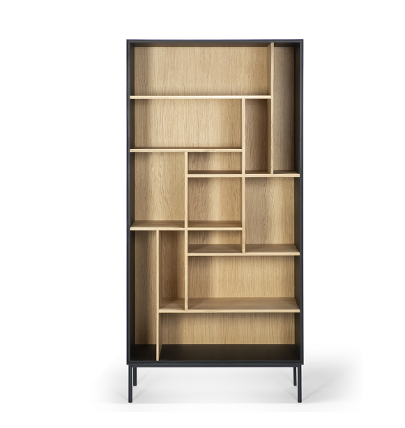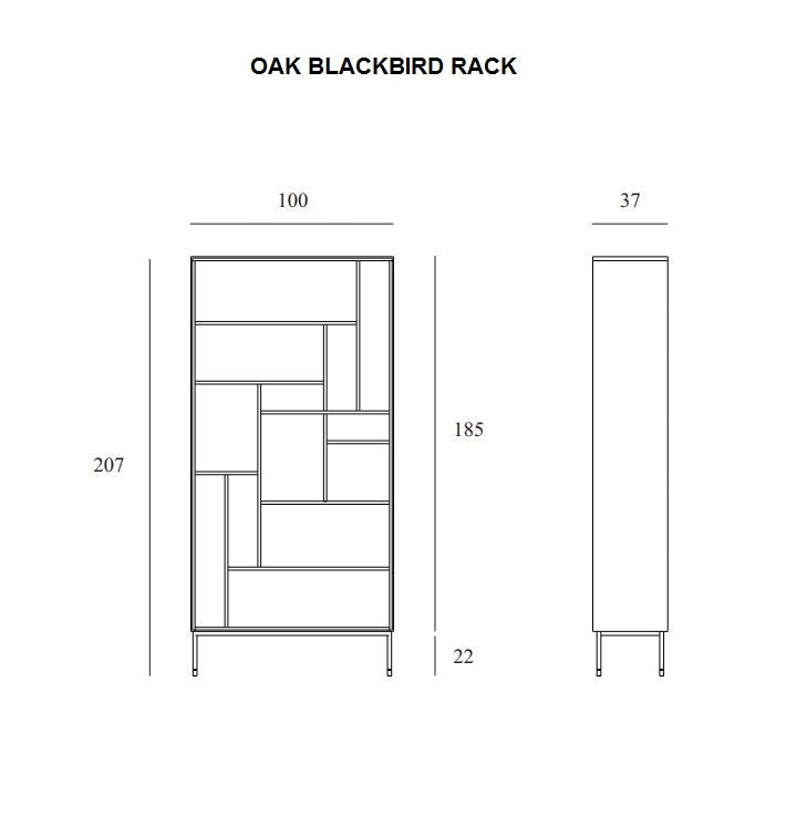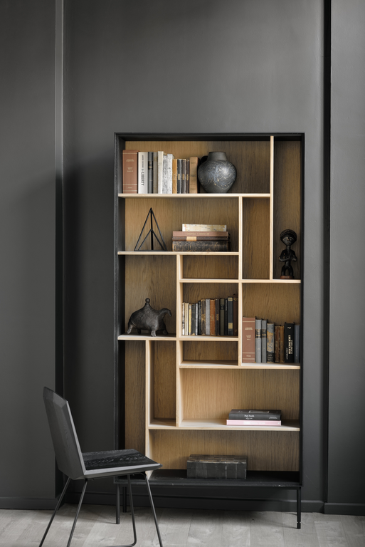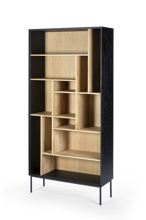 To create the Blackbird rack, designer Alain van Havre combined our classic M-rack with the signature Blackbird collection. A visually solid yet airy composition that will display your favorite decorative objects in a beautifully balanced visual composition. Made from solid oak and black tainted solid oak with a varnish finish, and black metal legs.
