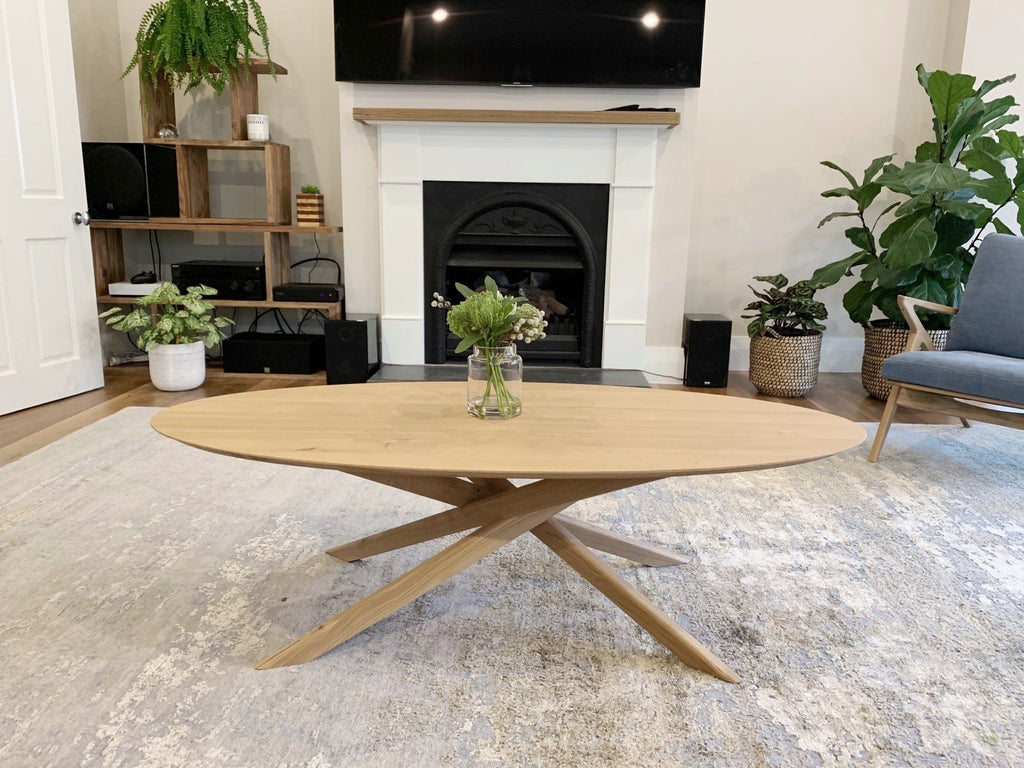 The Mikado coffee table, designed by Alain van Havre, is not simply a smaller version of the Mikado dining table. It's a complete reinterpretation of its larger design and a study of balance and symmetry. Made from solid oak with a hard-wax oil finish.