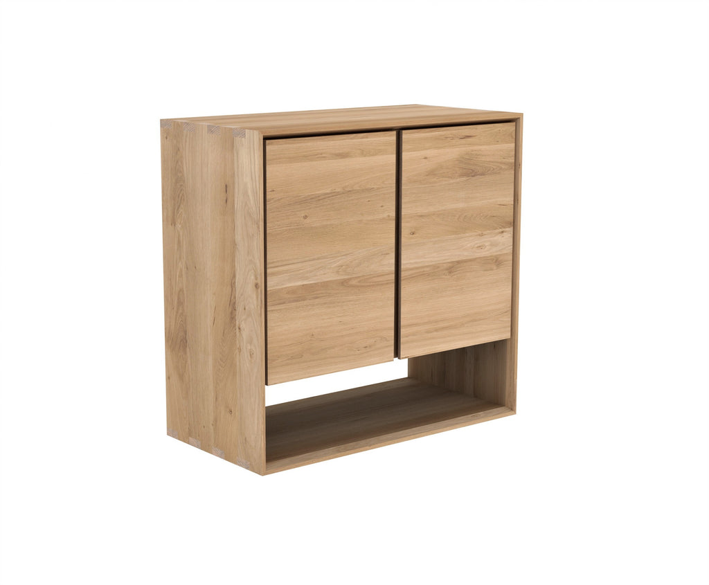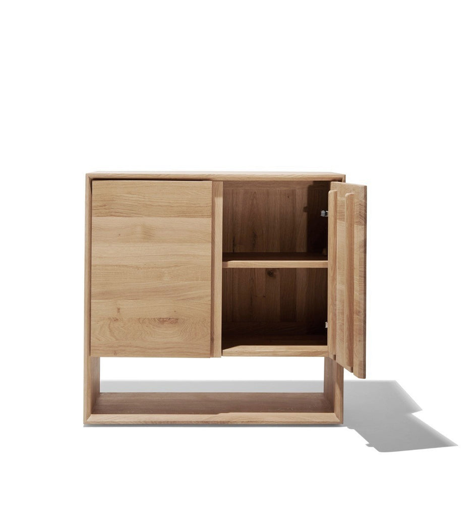 This oak Nordic sideboard features 2 soft-closing doors. The Nordic collection combines refined design with the purity of solid wood. The beveled edges gives this solid oak furniture an extra edge. Made from solid oak with a hard-wax oil finish.