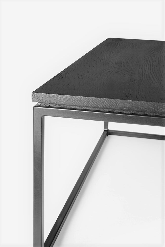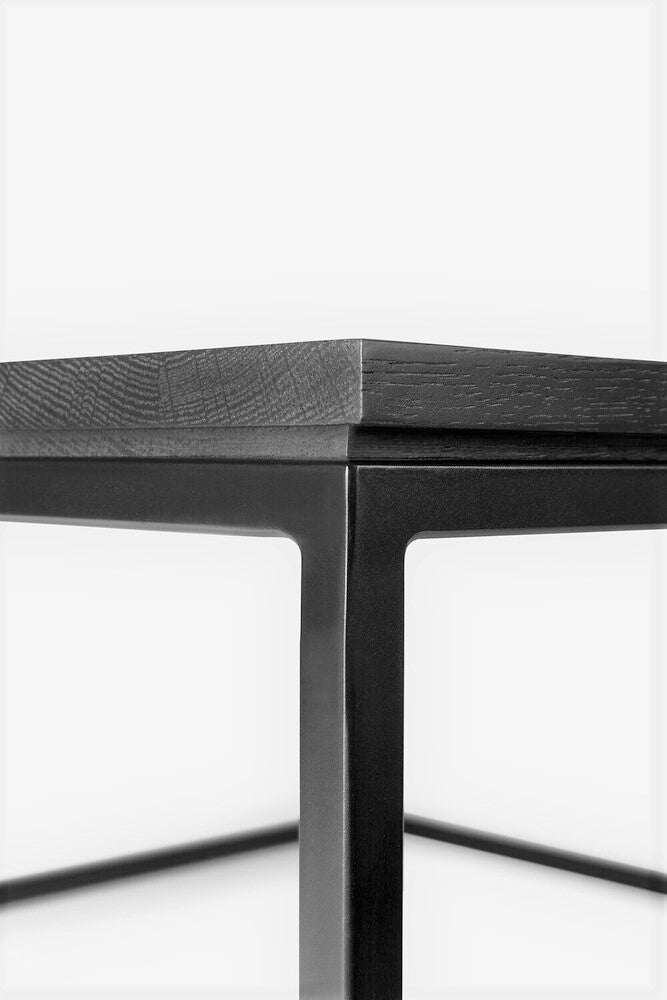 The Thin coffee table combines natural wood with a black metal frame, a perfect combination for your sleek interior. Made from black tainted solid oak with a varnish finish, and black metal legs.