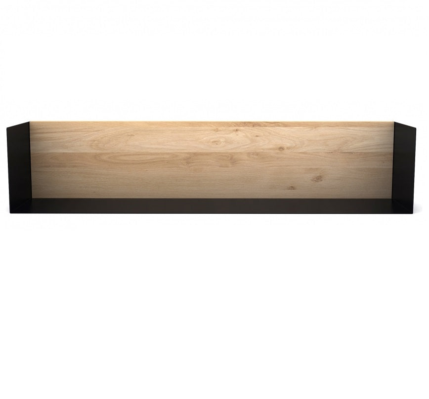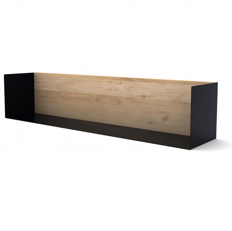 The silhouette of the Oak U shelf goes along the wall like a thin sharp line. The back in solid oak allows an easy and secure fixing on the wall, while the mix with thin metal makes a high quality and durable product. The invisible fixing on the wall makes the shelf appear airy. Made from solid oak with a hard-wax oil finish and black metal.