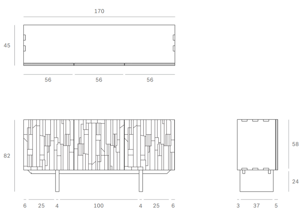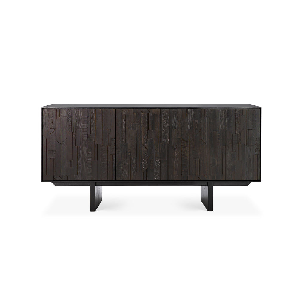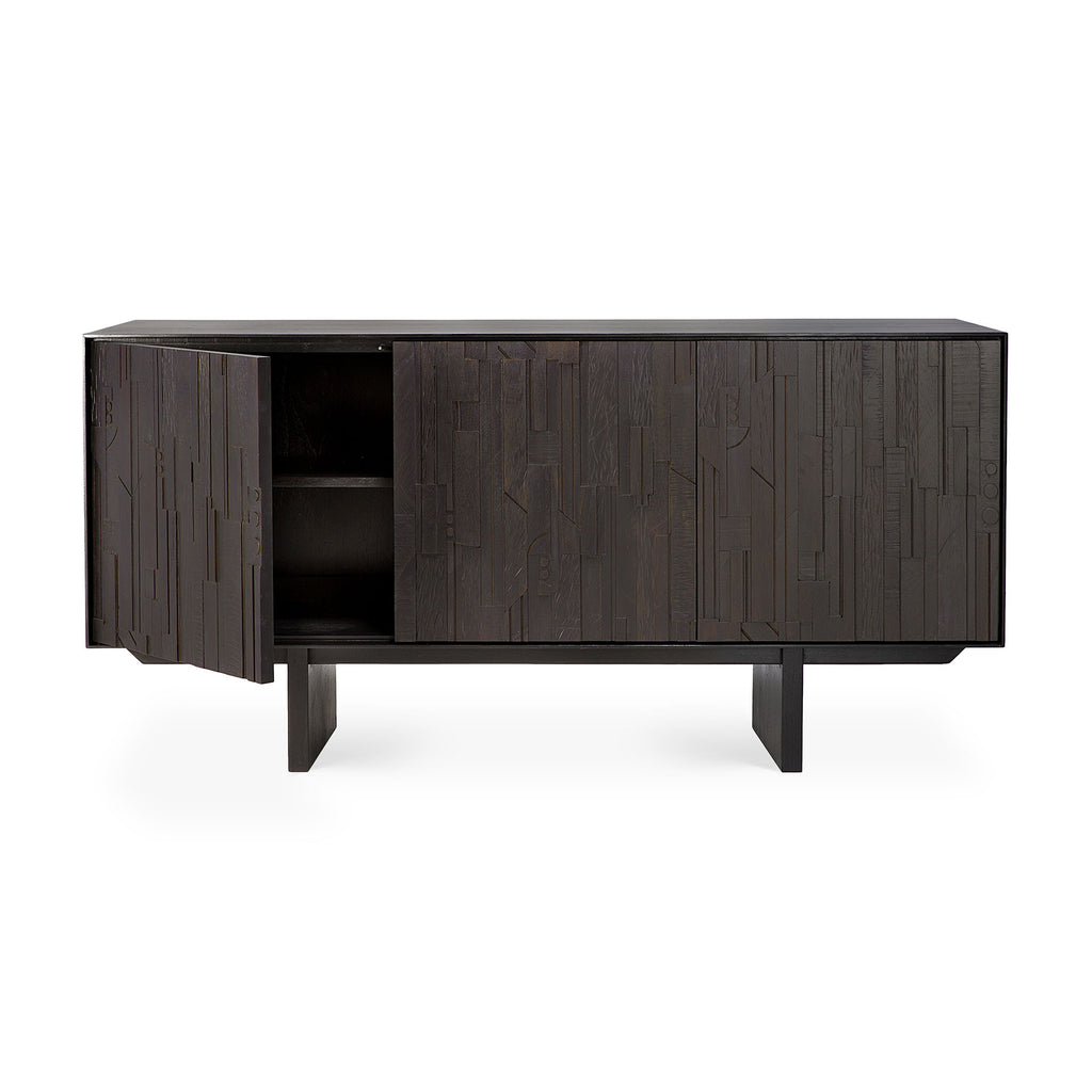 It all started with a happy incident. Inspired by the remaining offcuts from our factory designs, the layered wood pieces of the Mosaic sideboard form a rhythm, reminiscent of the partition of a pipe organ. Deeply influenced by music within his creative process, Alain van Havre offers a renewed translation of his obsession for movement. This Mosaic sideboard features 3 Mahogany doors with a varnish finish, Teak body and legs with a varnish finish. All made with 100% FSC certified plantation timbers.
