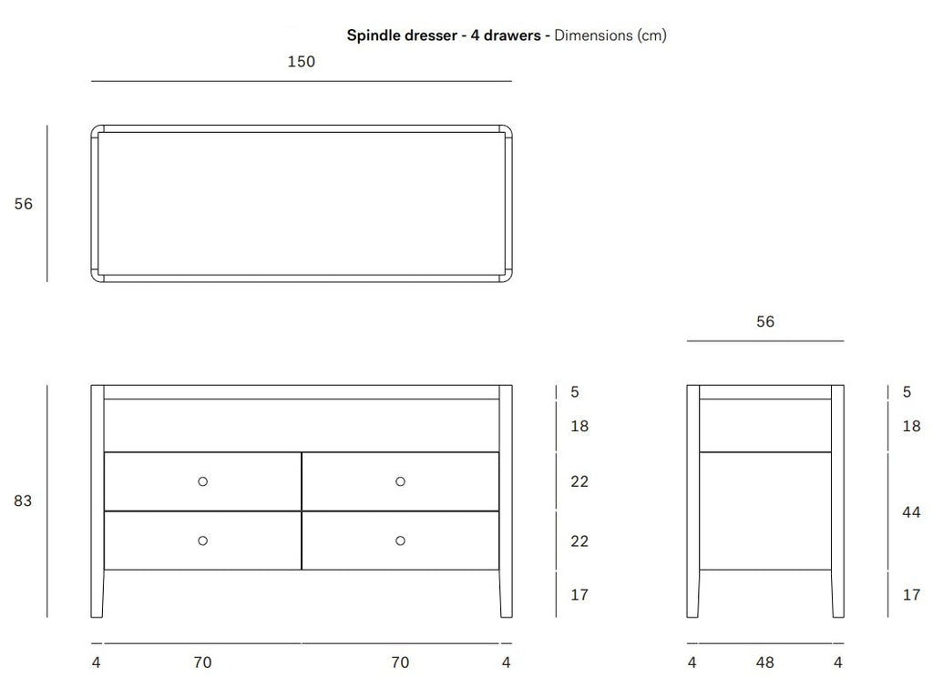 Sizes: W150cm x D56 x H83cm Net Weight: 83,5 kg