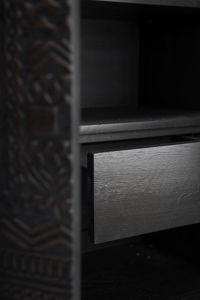 The Tabwa collection offers timeless centerpieces of minimalistic silhouette with a unique and distinct character. Contemporary wooden furniture are transformed into unique pieces of art where each pattern is carefully carved by our artisans. Named after the Tabwa culture from Central Africa, the collection’s inspiration comes from their fondness for linear geometric motifs.