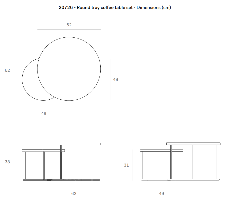 Sold as a set of 2 tables. To be combined with a small and an large round tray. Trays to be ordered separately.