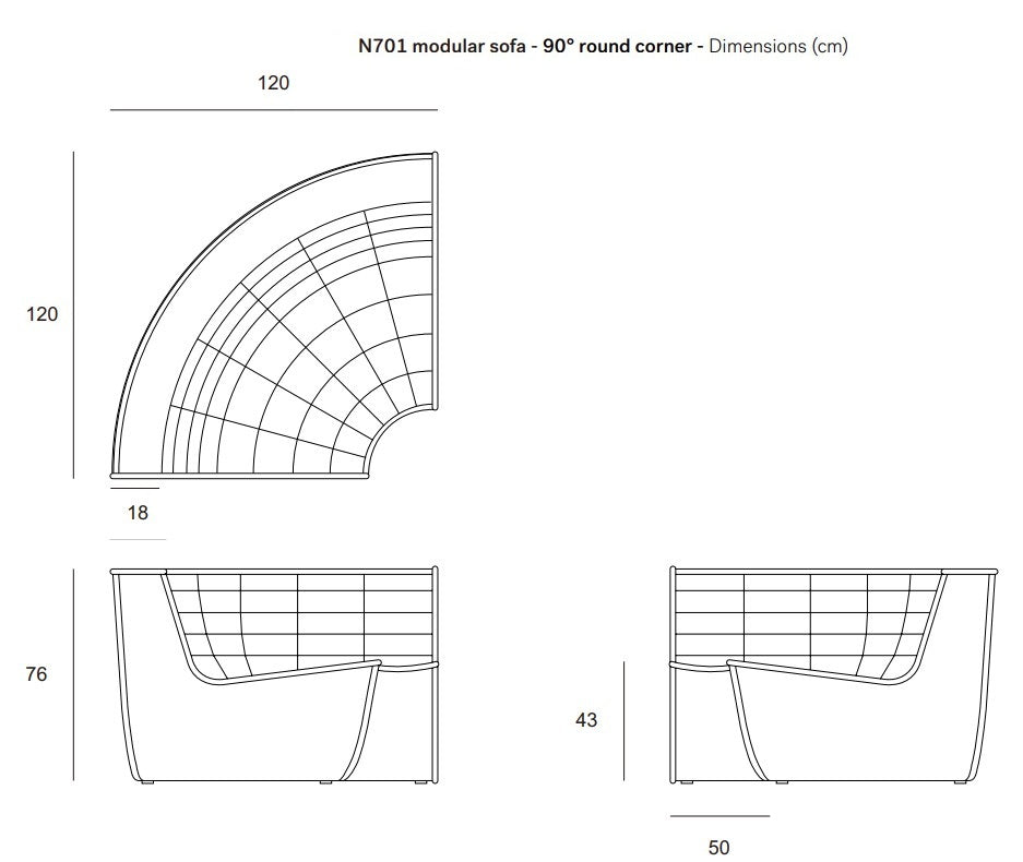 The N701 Moss Eco Fabric round 90° corner sofa is an inviting design that oozes comfort and relaxation. By combining the different pieces and sizes, you have unlimited possibilities when it comes to creating your own unique setting. Designed by Jacques Deneef, it’s available in multiple colors and materials.