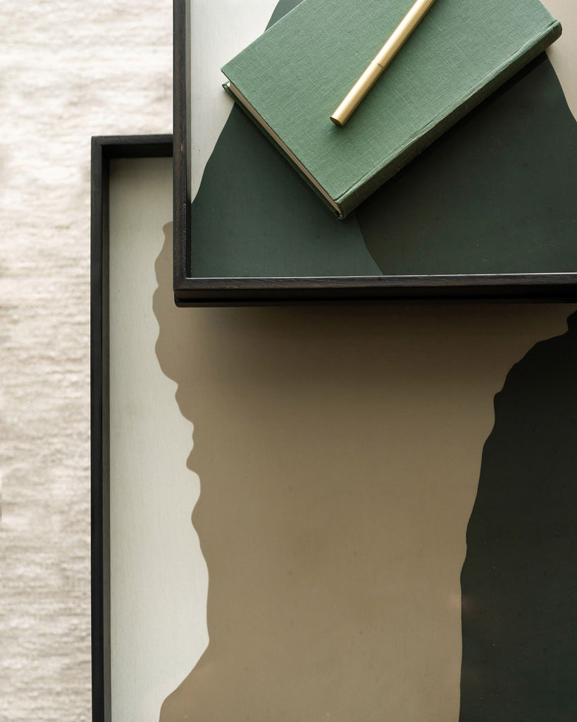 The Wabi Sabi collection of glass trays is inspired by nature. Designer Dawn Sweitzer explains: “While traveling through the blue ridge mountains, the vista became almost like a layered water color painting. Sky blues, grey and mist colors layered the horizon. As the sun was setting it took on a whole new color palette with warm autumn hues like sienna, sand, sepia.” Or how you can find beauty in the not-so-perfect.