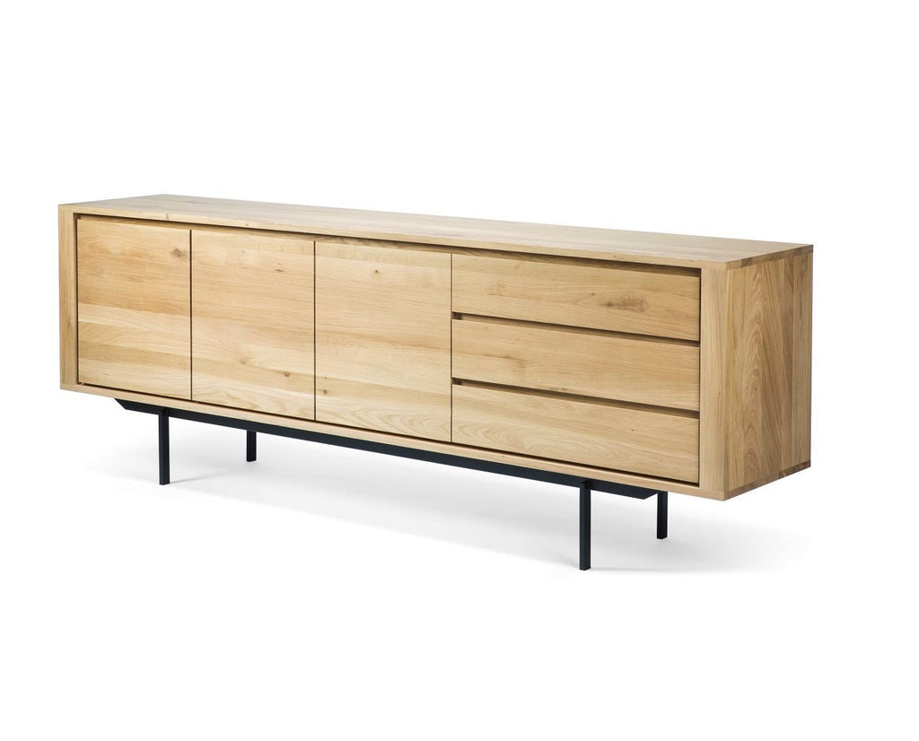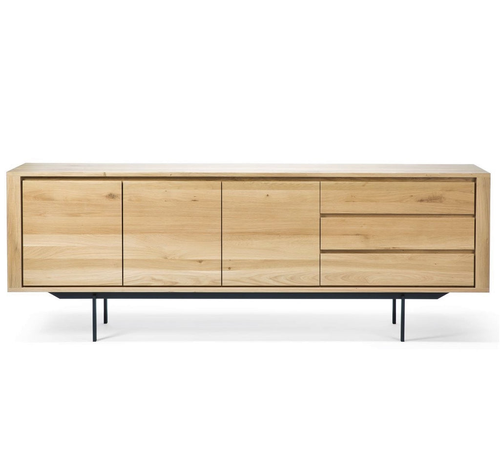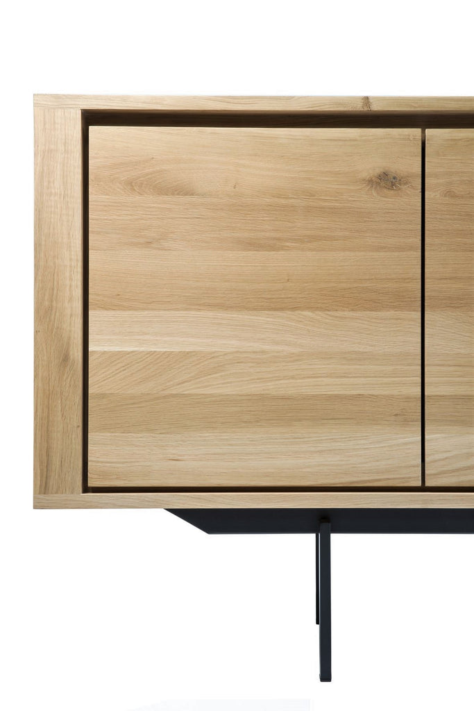 The Shadow collection is straightforward and robust with decisive lines. This more recent sideboard in solid oak with black metal legs, giving the design room to breathe, elevates this sideboard to new heights. Features 3 doors and 3 drawers. Made from solid oak with a hard-wax oil finish and black metal legs.
