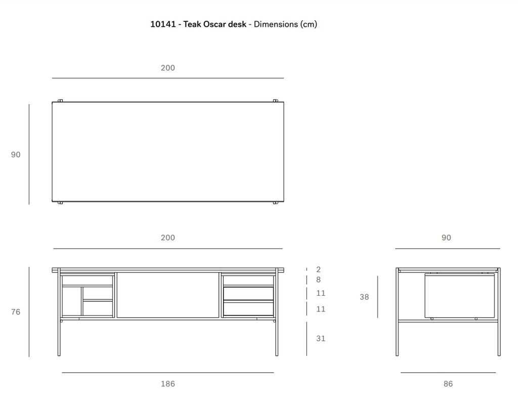 Some like a minimalistic look, others need more storage and organization. Whether you like the first or the latter: the Oscar desk is available with or without drawers. Designed by Alain van Havre and teak drawer doors hand carved by our artisans. Features 2 drawers with hand-carved fronts. Made from solid teak with black metal legs.