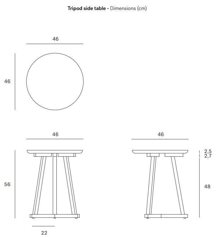 The Tripod side table is a light, versatile piece that can be used on its own or in a group of several tables. It can easily be moved from room to room, placed next to a chair or a settee, or as a bedside table. To enhance the natural material beauty, this teak product comes without any finishing or protective treatment applied. For more information, please refer to the care and maintenance instructions for ‘natural teak’. Made from FSC® certified solid teak.