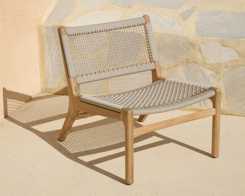 Alluring from every angle, luxuriant shapes and curves form the basis of the Jack collection. Featuring an Italian weave for the seat and back, this Jack lounge chair offers an extra touch of grace, crafted from outdoor-resistant cord that is equally suited for indoor use. The Jack offers clean, classic lines with a modern touch; every detail has been meticulously crafted to ensure comfort and elegance. Woven seat is anti-mould, anti-allergy, bacteria- and chlorine-resistant. Made from ethically harvested solid A-grade plantation Teak with floor protectors / 100% polyprop multi-filament yarn cord.