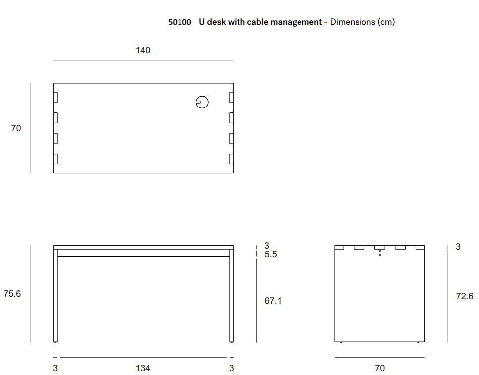 Solid and dependable, the U desk brings a sturdy simplicity to an office space with a touch of elegance. The simplicity of the design allows for plenty of room to spur creativity and personalisation. Features integrated cable management possibility in desktop. Power Circles and Metal cable trays to be ordered separately. Made from solid Oak with a varnish finish.