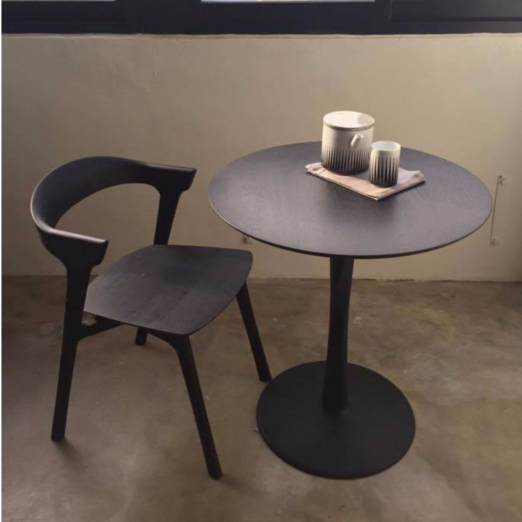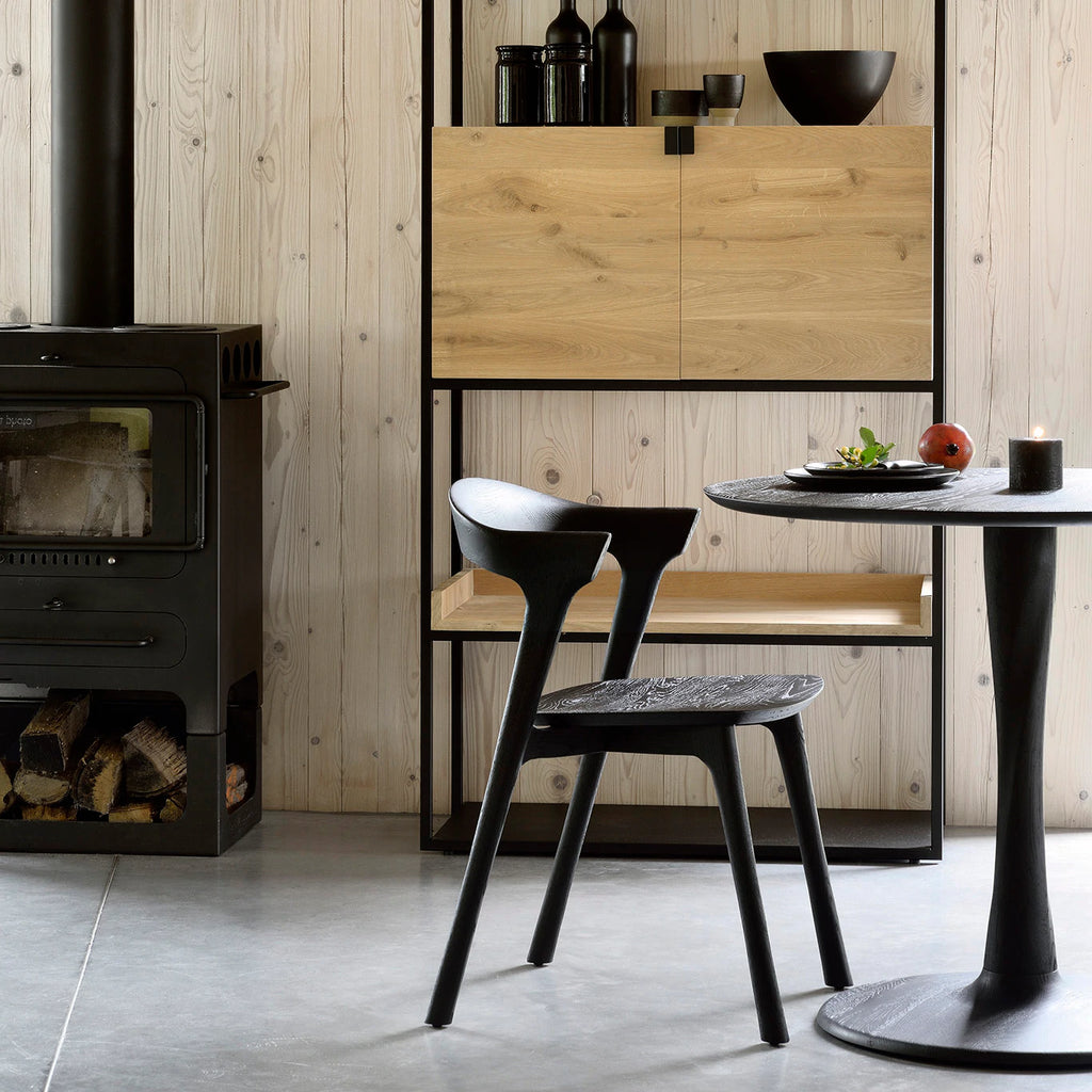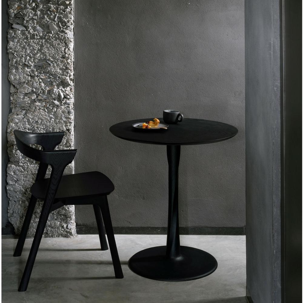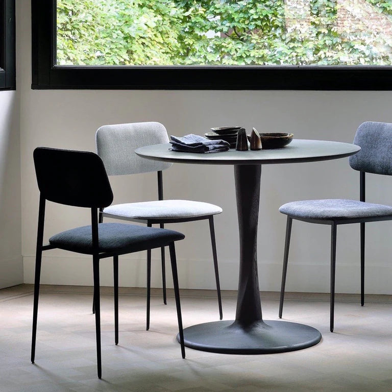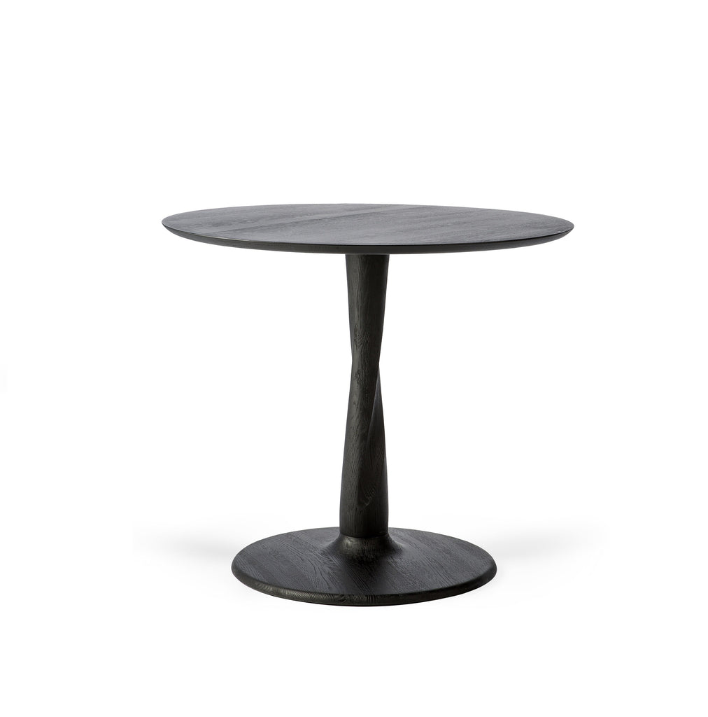 Airy with subtle complexities, the Torsion solid oak black dining table incorporates advanced woodworking techniques to create a light table top with a torsaded base of sculptural elegance. Made of 100% solid oak with a varnish finish.