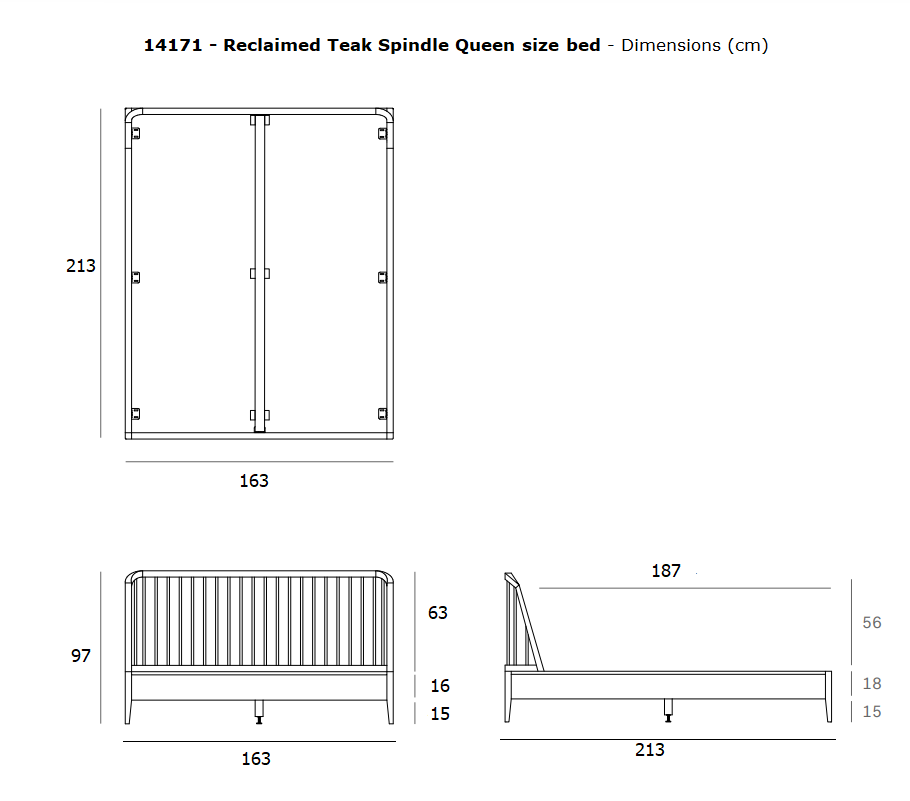 The Spindle collection found its inspiration in the traditional spinning wheel and incorporates perfectly aligned spokes into the headboard. Slightly tapered legs and rounded edges add a soft, sensual quality to this beautiful bedroom collection. Reclaimed teak offers a truly unique finish for each and every item — the origin of each hand-finished piece of furniture carries its own story in its material. Please consider product imagery as an indication only, each reclaimed teak item will carry its very own identity. Handmade from solid reclaimed FSC teak.