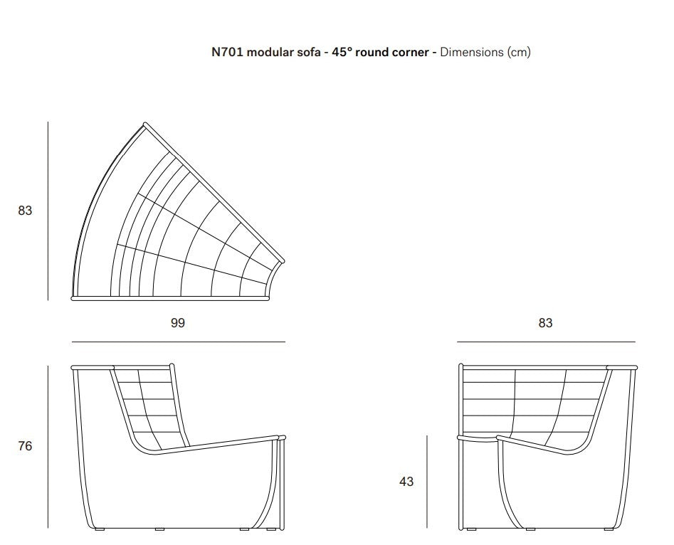 The N701 Graphite Eco Fabric small round 45° corner sofa is an inviting design that oozes comfort and relaxation. By combining the different pieces and sizes, you have unlimited possibilities when it comes to creating your own unique setting. Designed by Jacques Deneef, it’s available in multiple colors and materials.