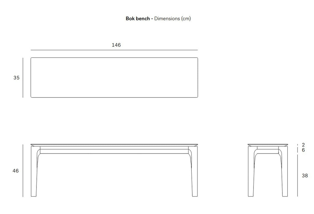 Reminiscent of a goat's curved horns, the Bok collection combines sculptural elegance and contemporary crafting into a graceful and airy form. The Bok bench will pair perfectly with the Bok dining table. But also, as a stand-alone against a wall, in a hallway, or at the end of a bed.