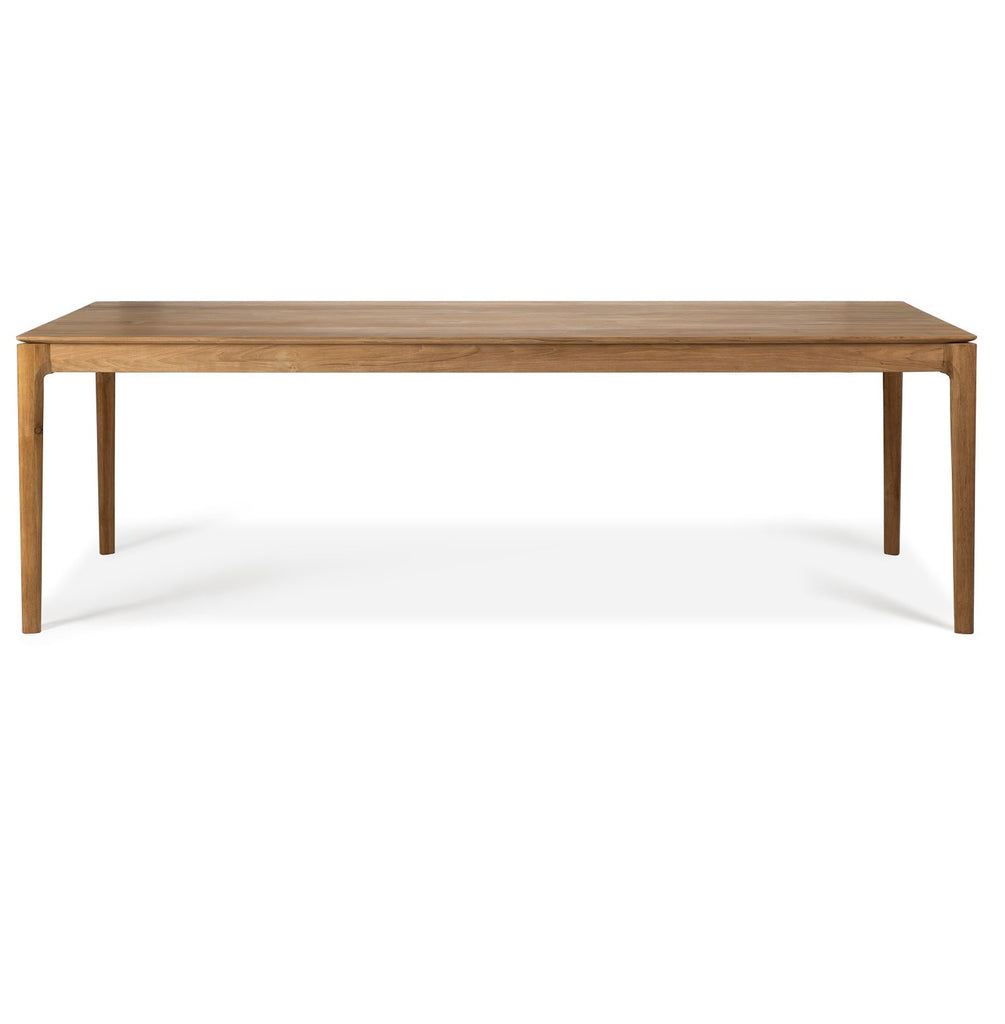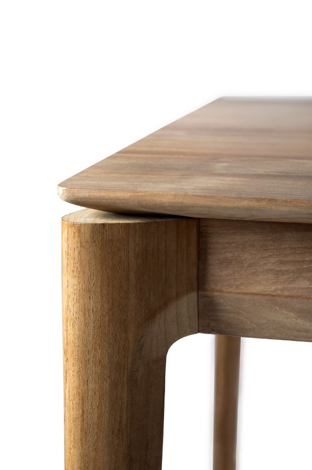 The Teak Bok Dining Table is a 10 seater and has warm neutral tones, while the clean lines and sculptural legs lend themselves to a contemporary feel. Made of solid Teak with a floating-look top and uniquely designed legs based on a mid-century twist. This product is made using sustainable and responsible wood and is FSC certified.