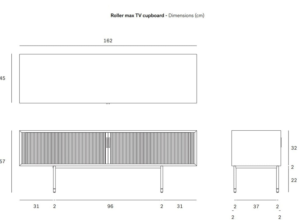 The Roller Max collection is remarkable in its design, distinguished with its stacked wood-stick effect. The TV cupboard offers functional storage in an eye-catching design, resulting in an elegant and sophisticated item for both residential and commercial spaces.