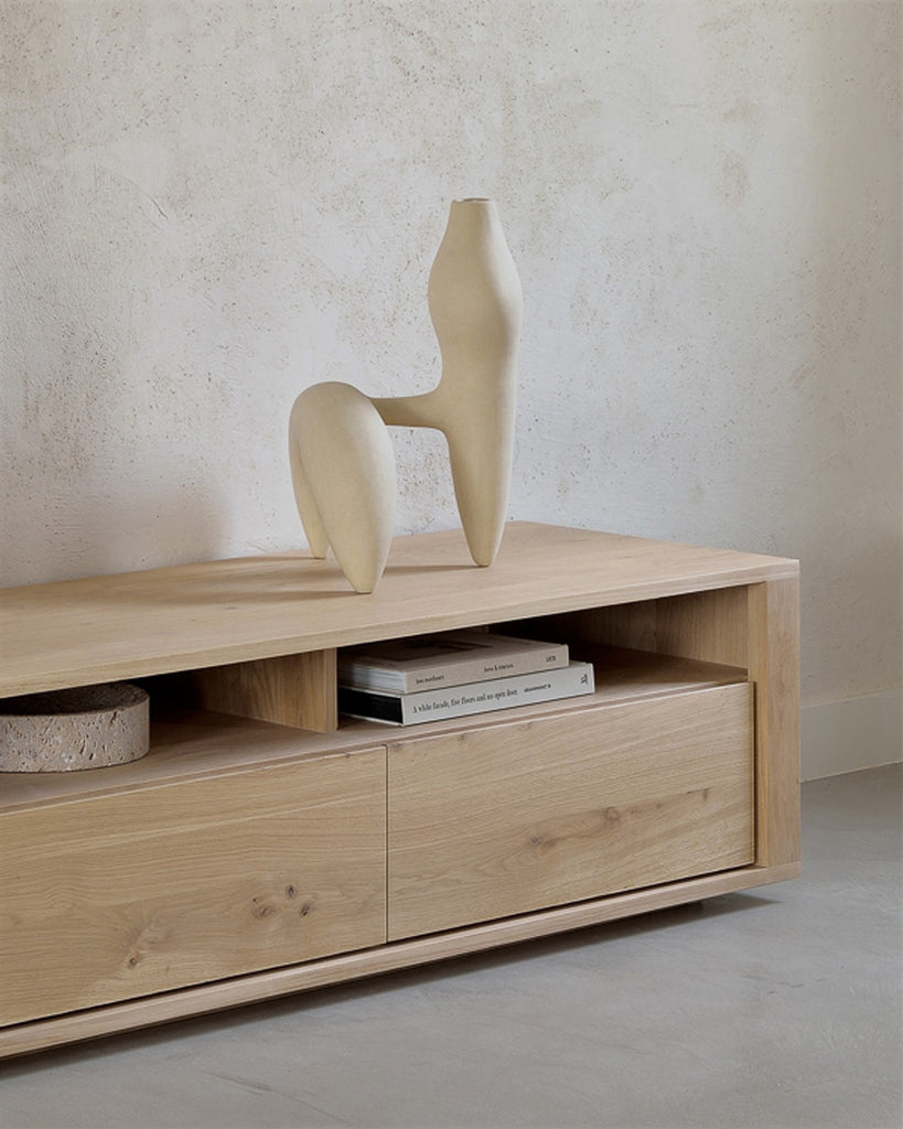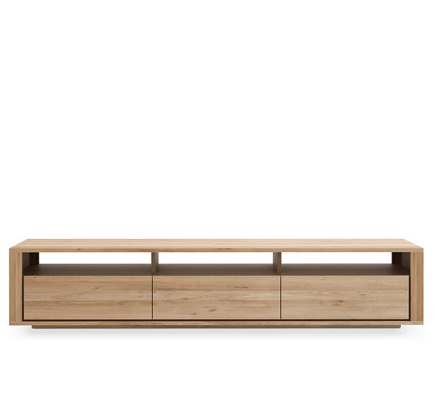 Straightforward and robust with decisive lines, the Shadow TV cupboard in solid oak is a simple yet impressive solution to your storage needs. Features 3 drawers. Made from solid oak with a hard-wax oil finish.