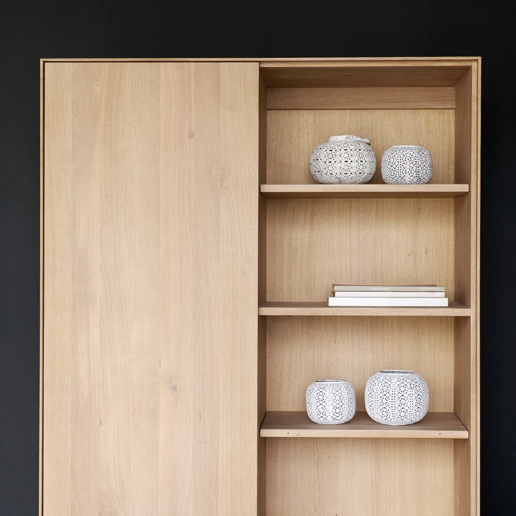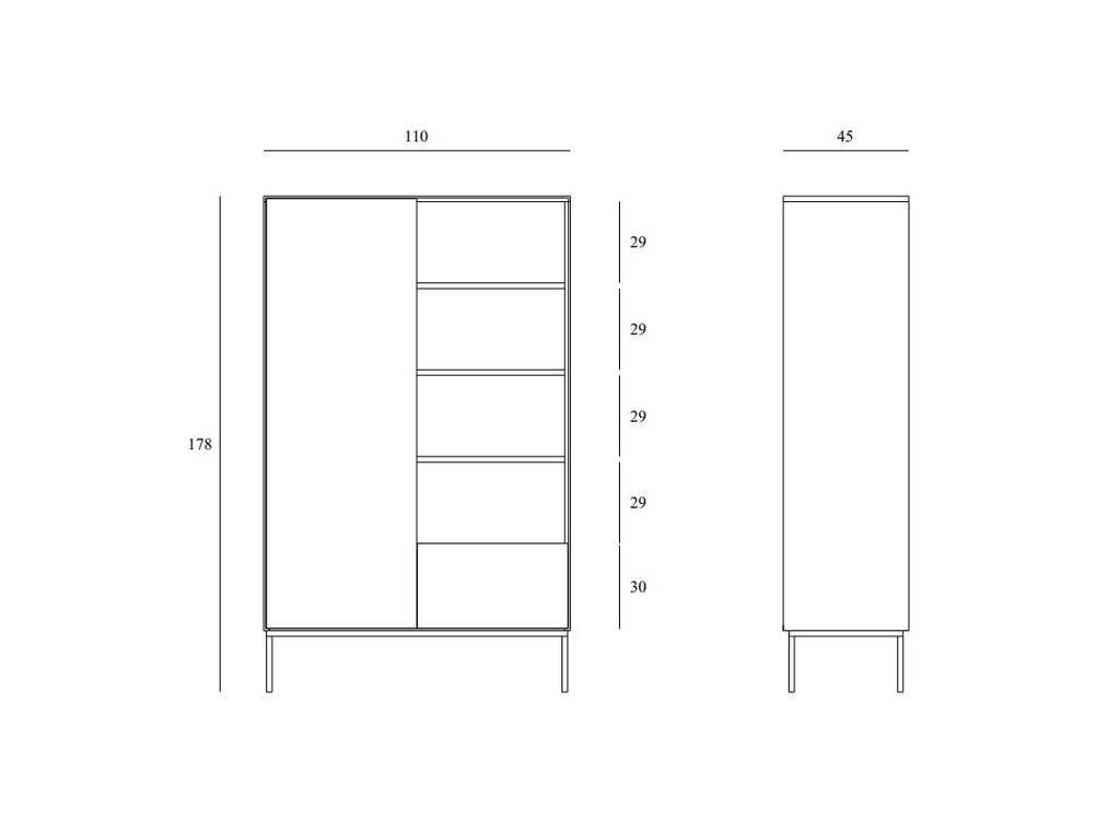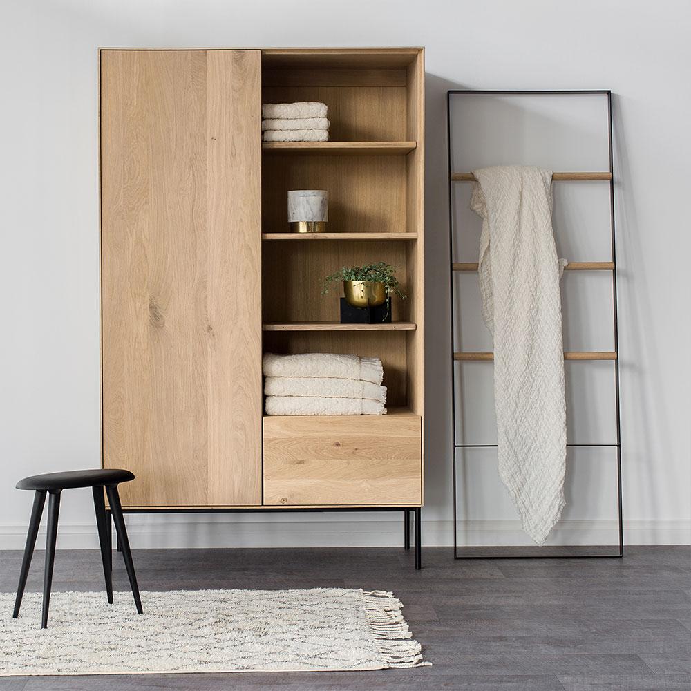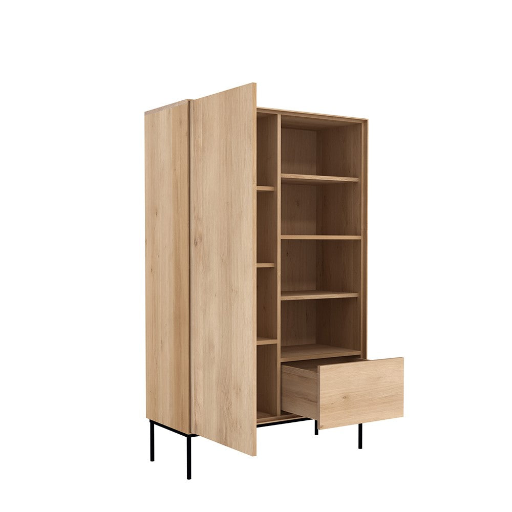 The Whitebird storage cupboard features 1 push open door and 1 push open drawer. For the Whitebird collection, designer Alain van Havre brings together opposing elements, combining soft round legs and eye-catching graphic lines into light and airy designs. Made from solid oak with a varnish finish and black metal legs.